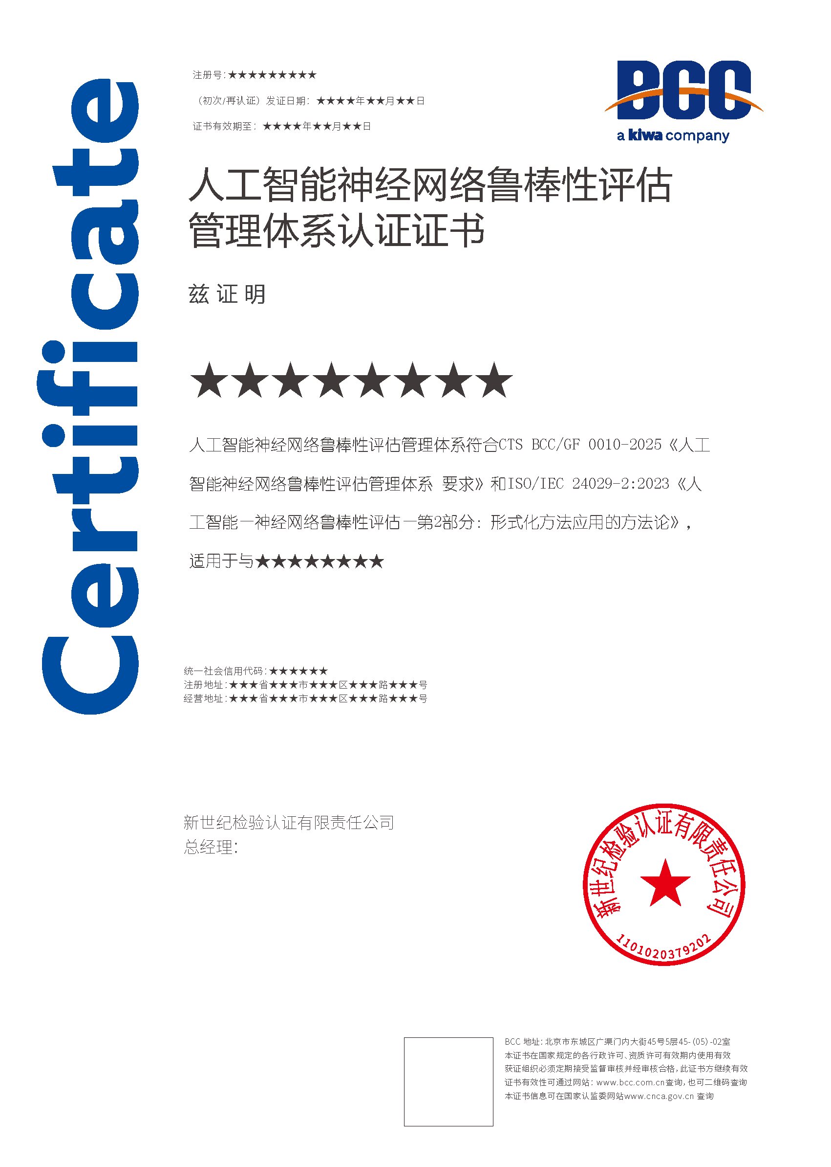 本頁涉及的認證服務中均有對應的《認證實施規(guī)則》,BCC擁有其最終解釋權(quán)。任何組織及個人未經(jīng)BCC許可,不得以任何形式全部或部分使用(法律要求除外)認證相關(guān)信息。如需獲取相關(guān)實施規(guī)則請用以下方式聯(lián)系獲?。弘娫挘?10-58579316 郵箱:fwjs@kiwa.cn