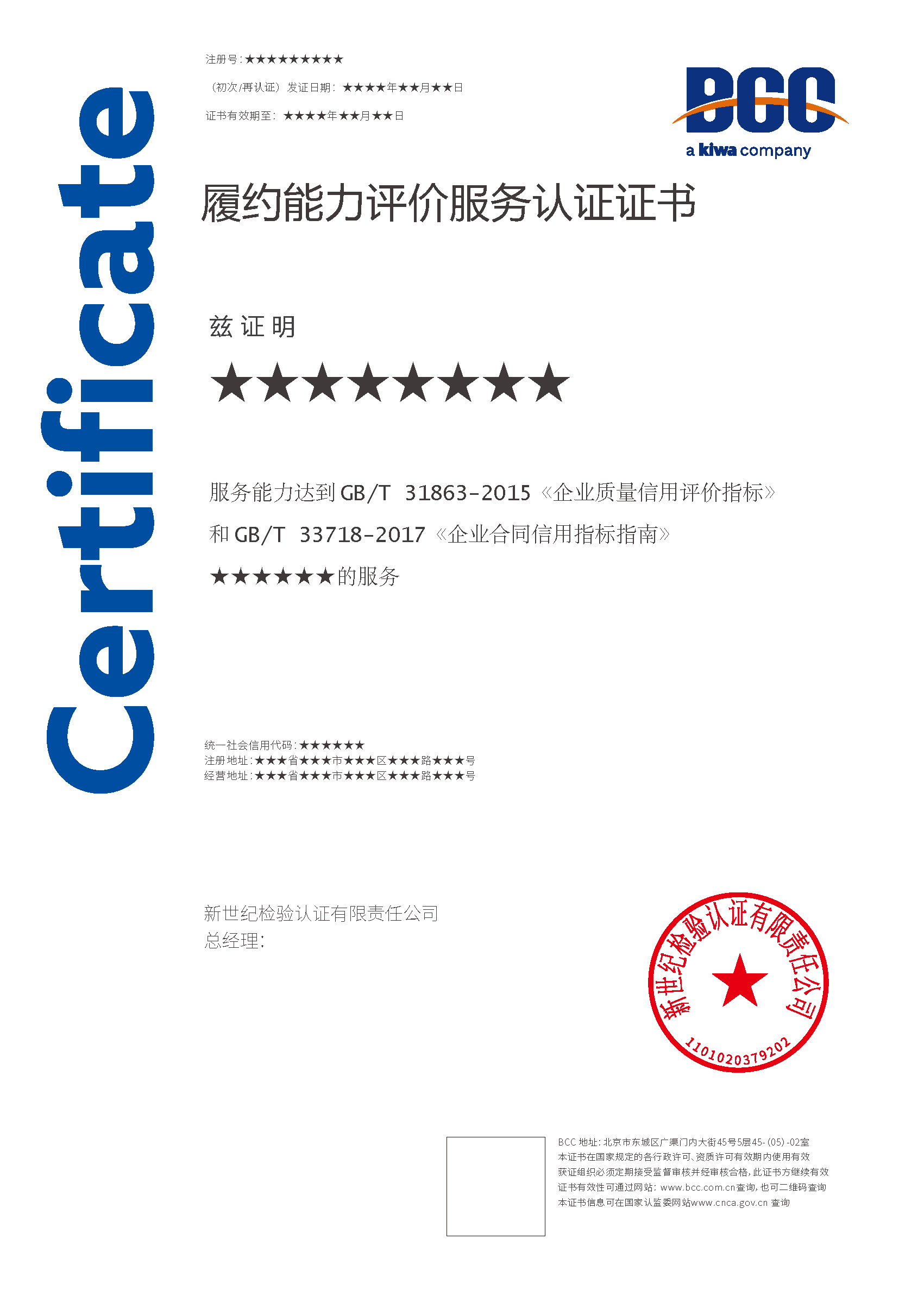 認(rèn)證依據(jù)為:GB/T 31863-2015 《企業(yè)質(zhì)量信用評(píng)價(jià)指標(biāo)》和 GB/T 33718-2017 《企業(yè)合同信用指標(biāo)指南》。