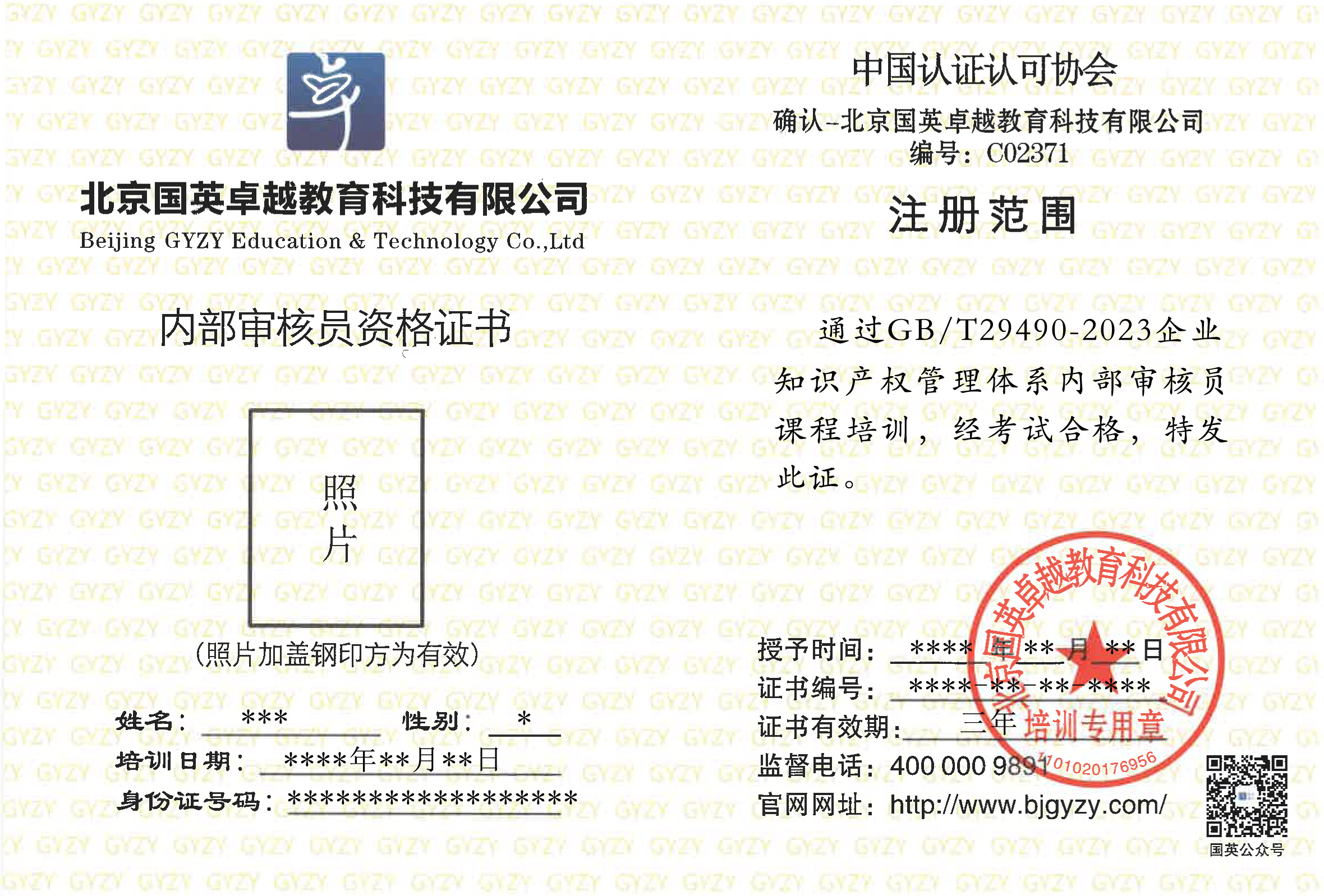 Kiwa BCC是首批獲CNAS認(rèn)可的知識產(chǎn)權(quán)認(rèn)證機(jī)構(gòu),可為企業(yè)頒發(fā)帶有“CNAS”標(biāo)識的知識產(chǎn)權(quán)管理體系認(rèn)證證書。認(rèn)證所用標(biāo)準(zhǔn)包括:GB/T 29490-2023《企業(yè)知識產(chǎn)權(quán)合規(guī)管理體系要求》、GB/T33250-2016《科研組織知識產(chǎn)權(quán)管理規(guī)范》、GB/T33251-2016《高等學(xué)校知識產(chǎn)權(quán)管理規(guī)范》。