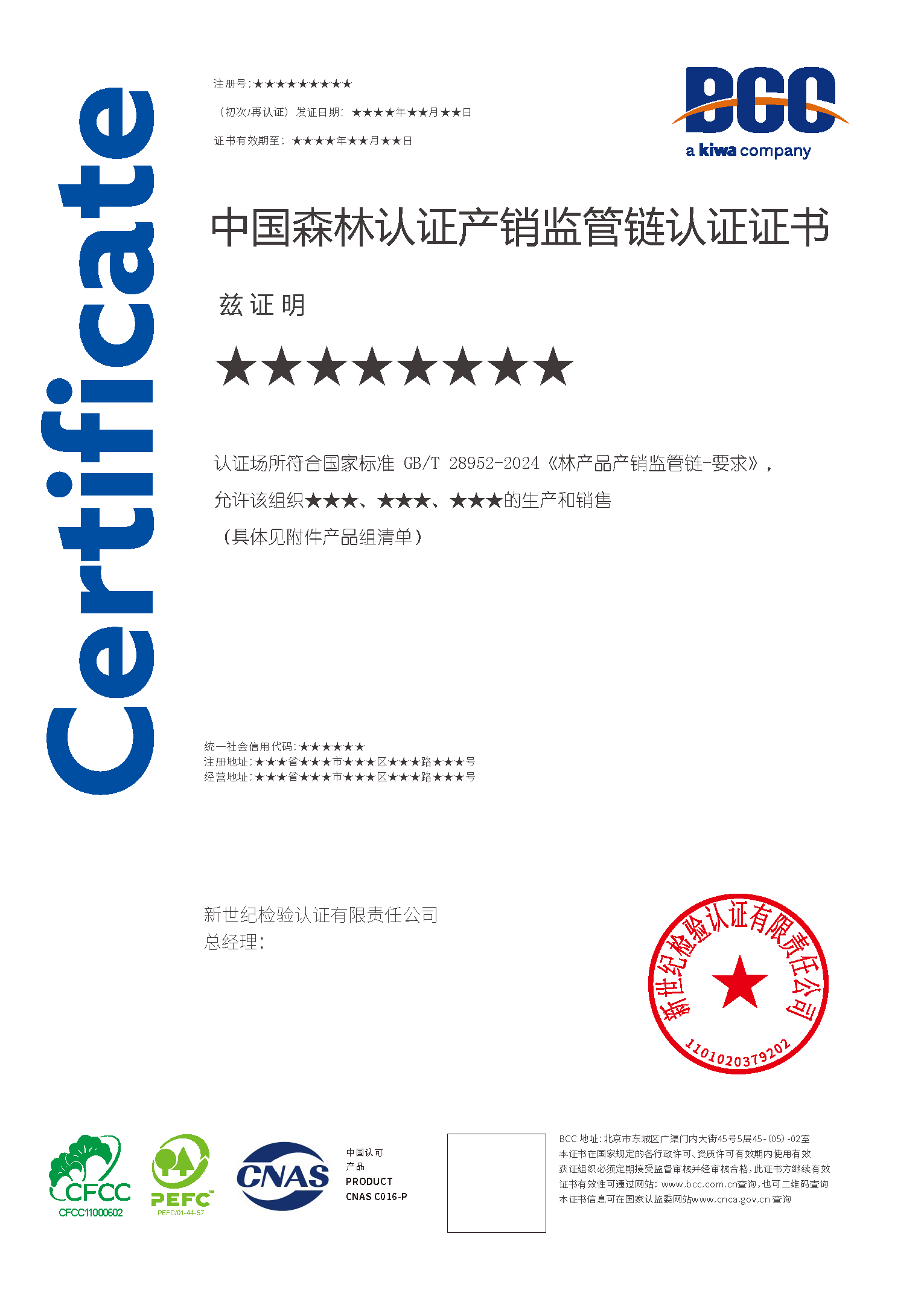 Kiwa BCC已經獲得英國土壤協(xié)會SA授權,可在中國開展FSC®產銷監(jiān)管鏈認證(FSC® N001893)和PEFC產銷監(jiān)管鏈認證。同時,可為組織提供CFCC產銷監(jiān)管鏈認證服務。