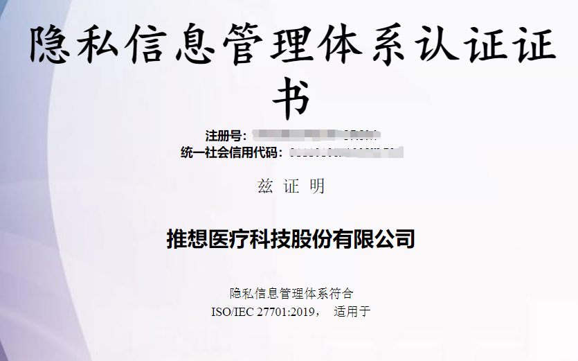安全保護再上新臺階!推想醫(yī)療獲ISO27701隱私信息管理體系證書